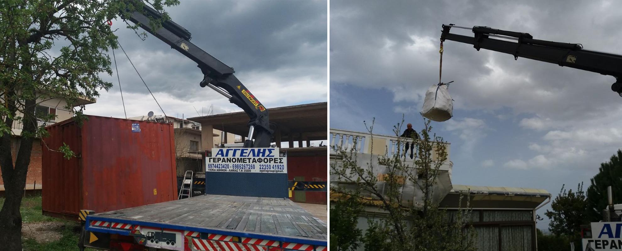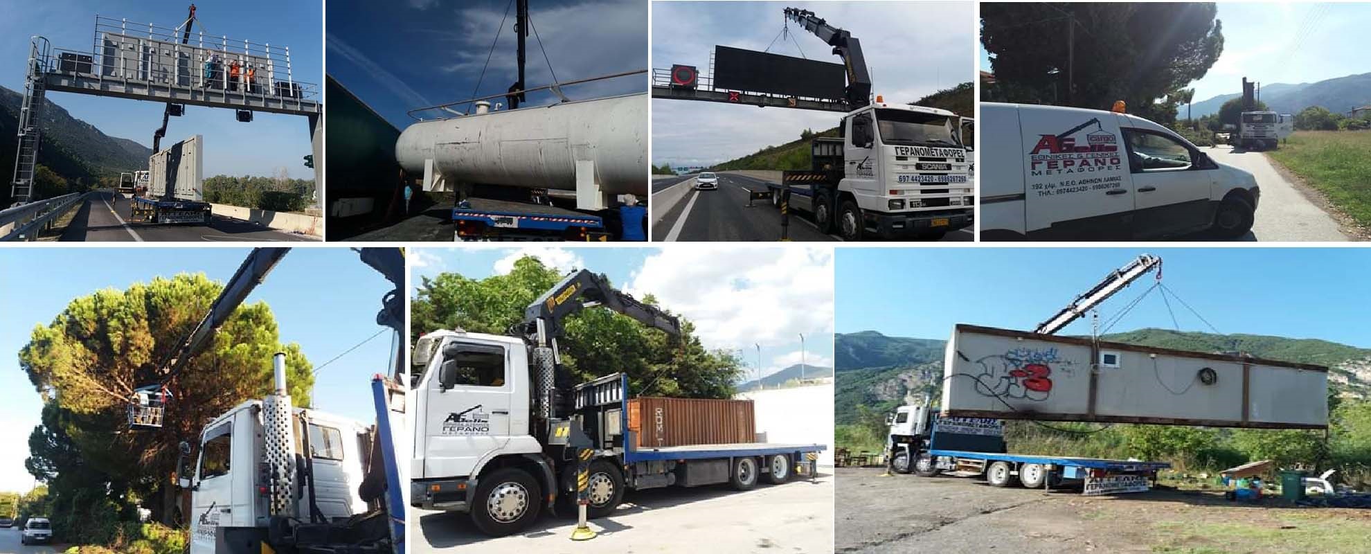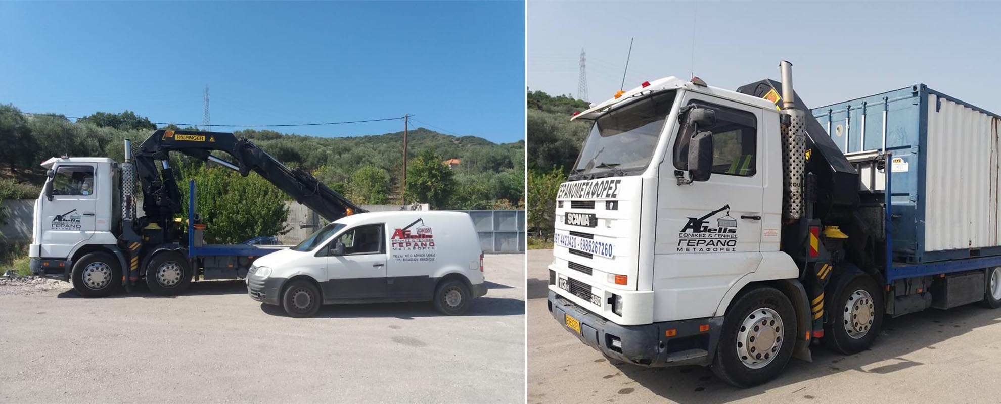 Φέρουμε εις πέρας μεγάλο εύρος γερανομεταφορών, εργασιών “γερανού - καλαθιού προσωπικού”, παρέχοντας ασφαλιστική κάλυψη φορτίου και φροντίζοντας για την άψογη και άμεση εξυπηρέτηση των πελατών μας.