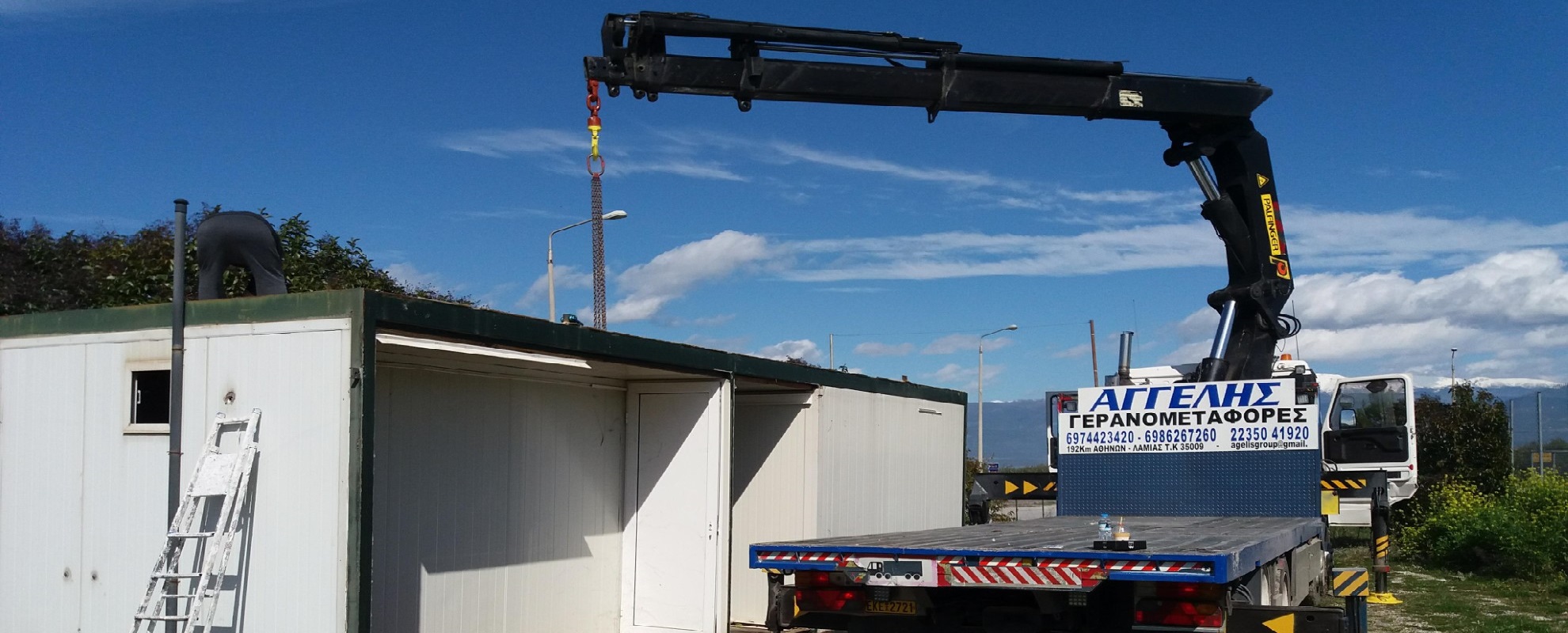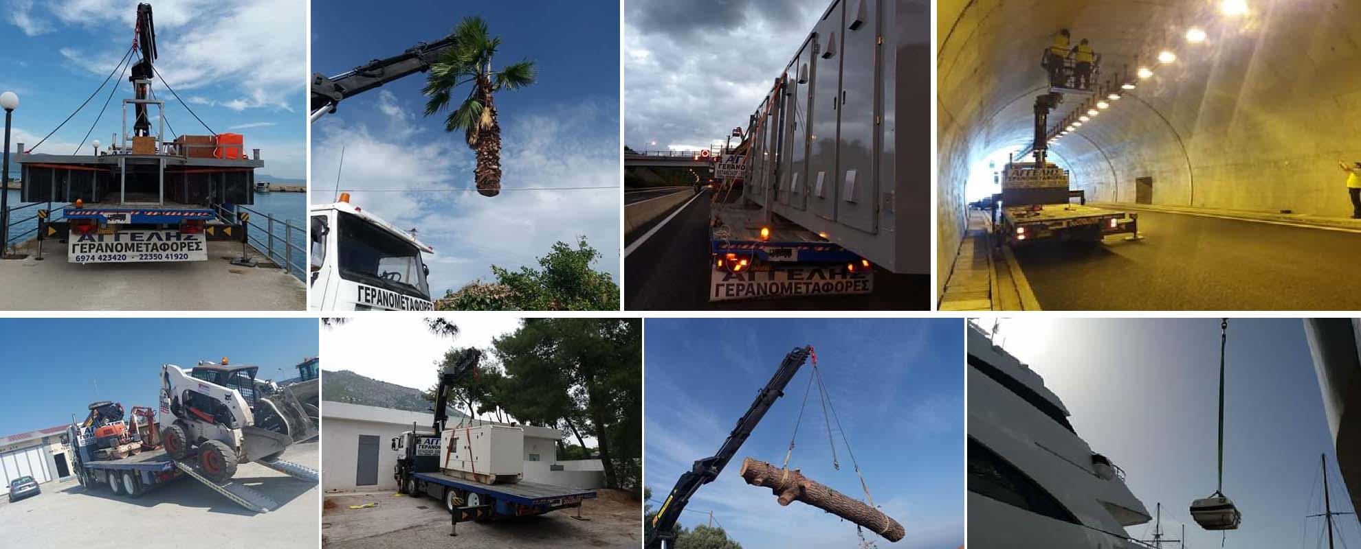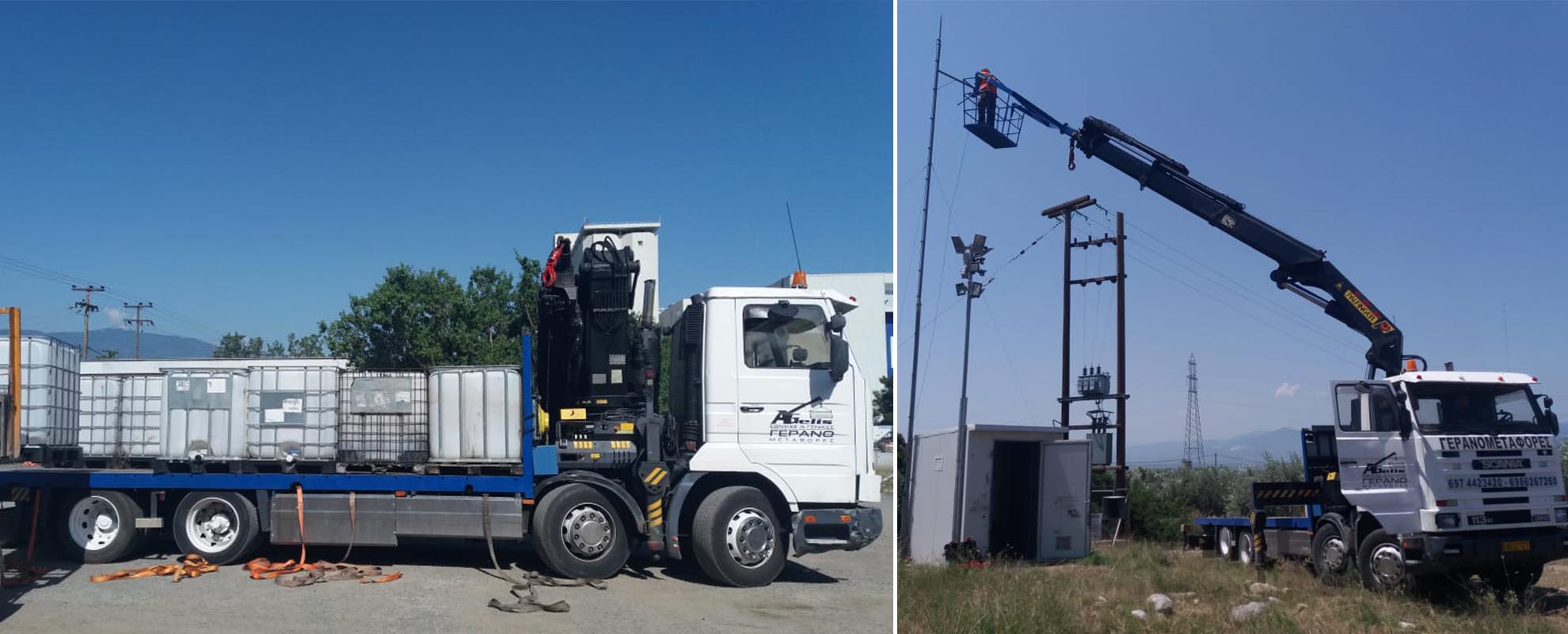 Φέρουμε εις πέρας μεγάλο εύρος γερανομεταφορών, εργασιών “γερανού - καλαθιού προσωπικού”, παρέχοντας ασφαλιστική κάλυψη φορτίου και φροντίζοντας για την άψογη και άμεση εξυπηρέτηση των πελατών μας.