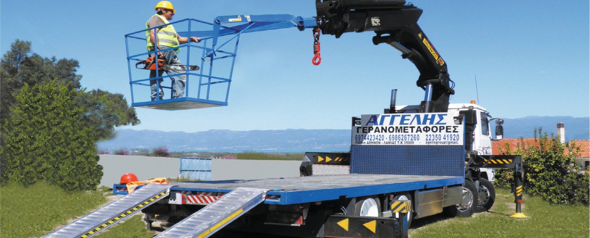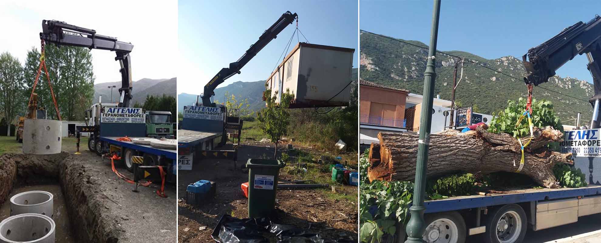 Διαθέτοντας τον αρτιότερο εξοπλισμό καλύπτουμε με υπευθυνότητα, συνέπεια και ασφάλεια, μεγάλο εύρος γερανομεταφορών όπως και οδικής μεταφοράς βαρέων μηχανήματων & οχημάτων, ασφαλή μεταφορά container, καθώς επίσης διαθέτουμε καλάθι για ολοκληρωμένες υπηρεσίες κοπής και κλαδέματος ψηλών δέντρων.